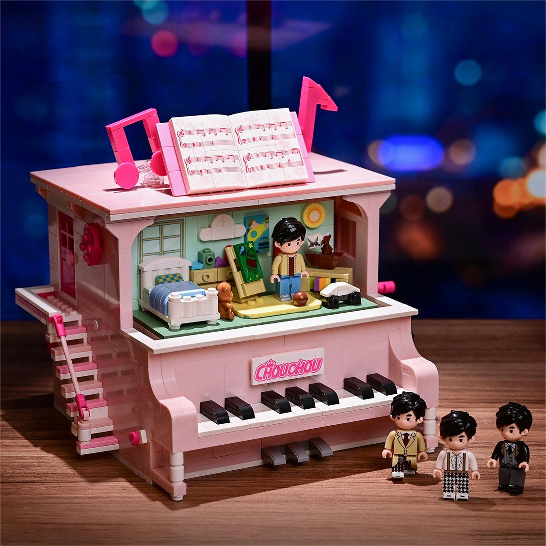 周同学正版授权的首款积木产品Keep being fantastic周同学,开发灵感来源于周同学的音乐世界,用天马行空的积木拼出了一架满载小公举回忆的粉色钢琴。