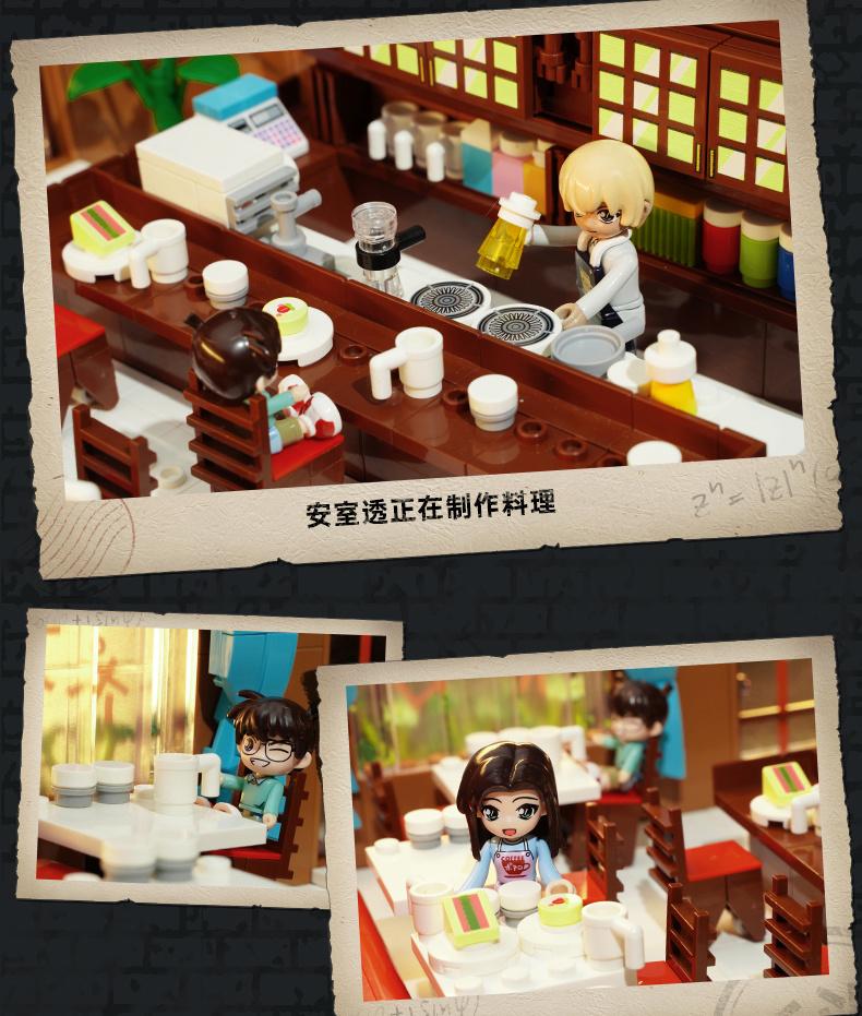 这套积木分别还原了名侦探柯南中经常出现的两个场景:毛利侦探事务所和白罗咖啡店,两层场景可进行上下组合拼装,值得柯南迷收藏。