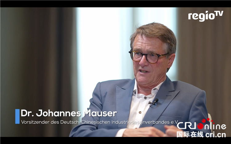 德国工商大会主席彼得·阿德里安在节目中提到了中德合作的新舞台——新能源汽车行业。他强调,在全球能源转型、绿色低碳发展的大背景下,德中汽车产业在共同迈向智能化、电气化的过程中,可以相互借鉴、激发合作潜力。