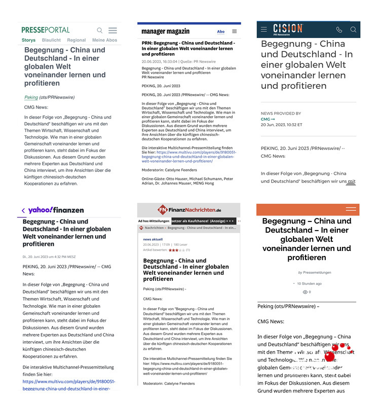 电视论坛节目除在德国两家电视台播出外,德国财经频道、德新社新闻资讯频道、德国《明镜》周刊旗下财经网站等多家德国主流媒体也进行了转载,覆盖约700万德国受众。