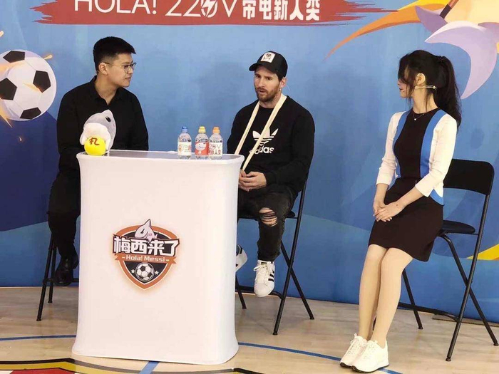 机会真的来了!经过主办方面试后,定下由我担任主持和翻译。大概一个多月之后,活动直播,我真的见到了梅西!那时,梅西就坐在我的旁边,两个小时里我们一直在聊天。