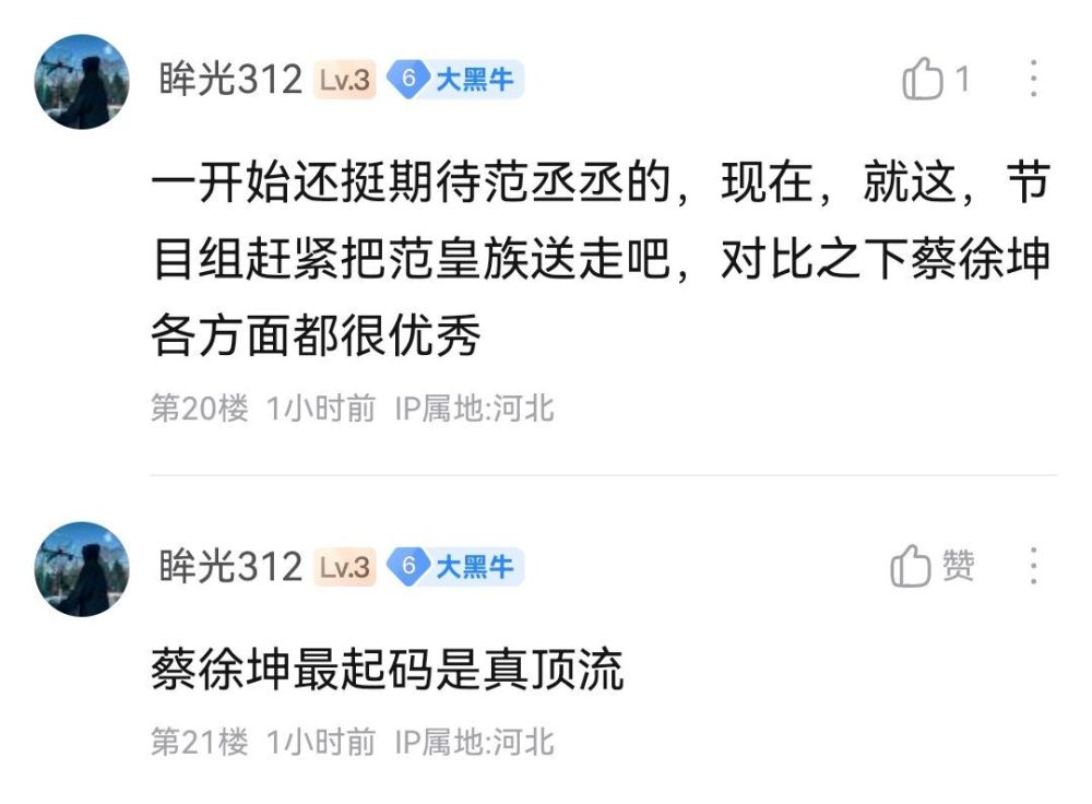 节目已结束,打开相关互联网社交平台,我果然就看到了这样的言论:范丞丞在这节目不如蔡徐坤……