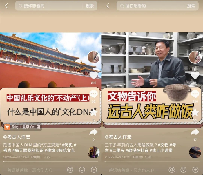 我们从未抵达过那个时空,却能在抖音上窥探历史之形色。多元化的科普内容,让考古一改过去的枯燥面孔,变得更鲜活生动。尽管很多人目前还是“门外汉”,但却不影响他们参与到考古话题互动中,甚至从此走上考古之路。