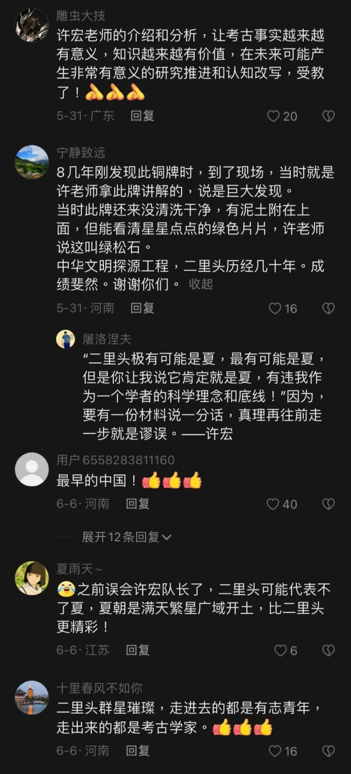 他将这一观点发到抖音上,获得了众多网友的点赞,也有人评论:“考古是非常严谨的,绝不能为了证明而证明,慢慢挖吧。”看到这些年,公众和考古人之间逐渐达成文化遗产保护的共识,许宏很欣慰。