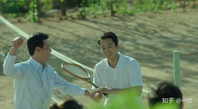 【人群以外的金真平,压抑、痛苦而孤独】作为战斗英雄,金真平毫无疑问是参与过杀戮的,而且手段残忍,景大尉曾经提到“把人的肠子掏出来,挂在树上”,这就是他所带领大队做出来的事情,虽然,他解释,是对方先做的,然而,手上所沾的鲜血却是不争的事实。但同时,他本性又善良,他阻止景大尉殴打刺伤他的伤兵,也不顾部下反对,救了音乐室社长。经历的残酷与他本性的善良相互撕裂、扭曲,让他患上了战后创伤应急障碍症。更可悲的是,他周围并没有能理解他的人。妻子打着爱的名义为了他的进阶絮絮叨叨,却从未关心过他的沉默、失眠。心理医生对他敷衍了事,一转身就把他的病情当成闲话泄露给别人。所以,温暖的阳光下,绿树丛里,他一个人对着墙一遍又一遍地挥动着网球拍,白色身影化成小点,被淹没在铺天盖地的绿荫里,正如他刻入骨髓的孤独感,被死死包着,无法突围,找不到一点点出口。