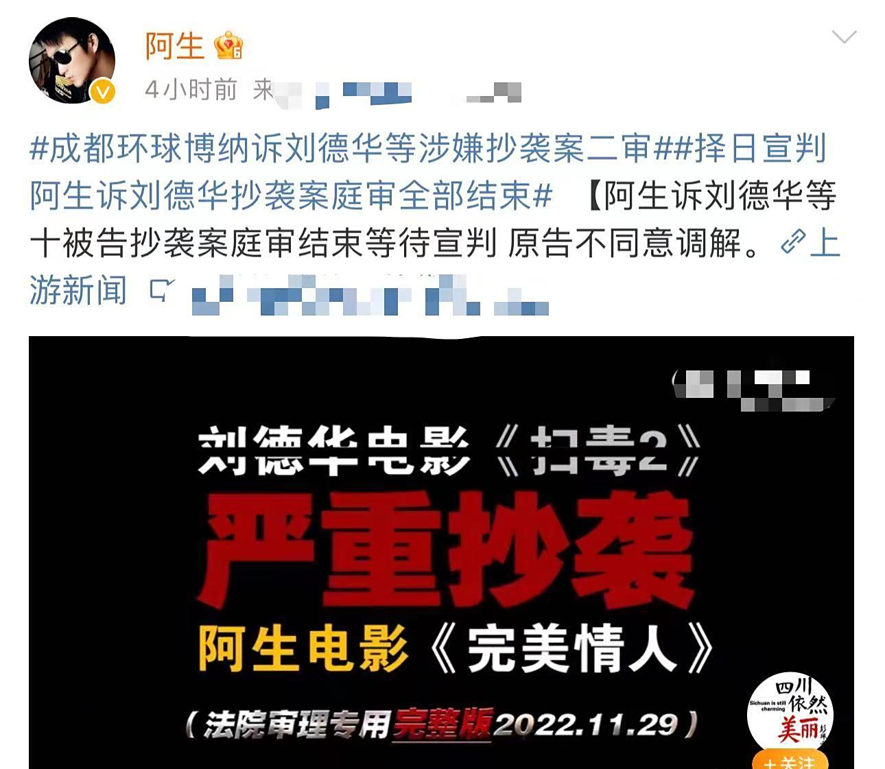但这次抄袭的开庭,刘德华并没有出席,而很多观众也不明白,为何这部电影都已经结束了两年了,阿生才想起来起诉,有蹭热度的嫌疑!