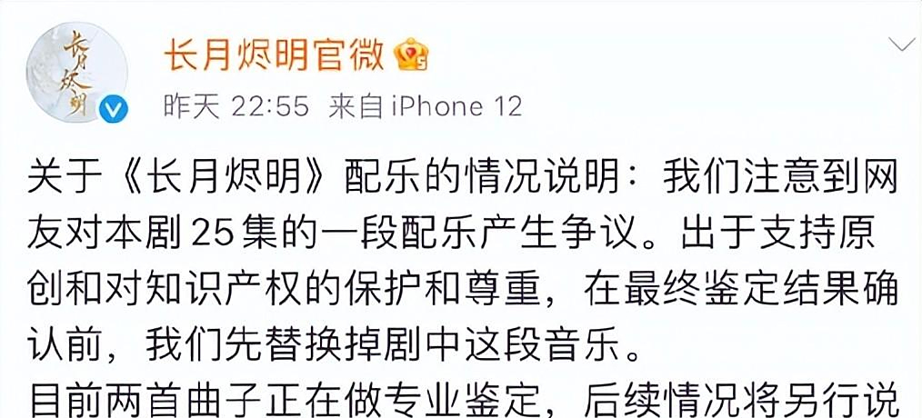 《长月烬明》剧方也回应,并且下架了这个配乐。虽然这个事件的后续,也不知道咋样了,但相信双方会妥善的处理。