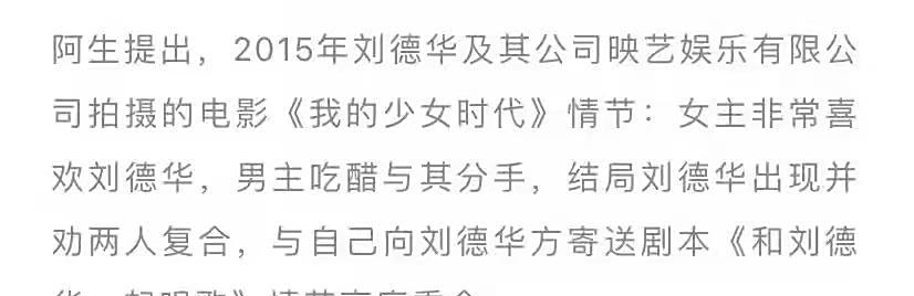 可很多网友也提出疑问,刘德华在《我的少女时代》中,也只是个客串的角色,或许就是简单的卖个人情,也并没有参与剧本的编写和拍摄,如果将这个“锅”甩给刘德华,着实有点离谱!