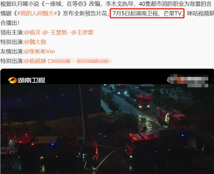 《我的人间烟火》讲述了消防站长宋焰(杨洋饰)和急诊科医生许沁(王楚然饰)曾经因为家庭原因无奈分手。