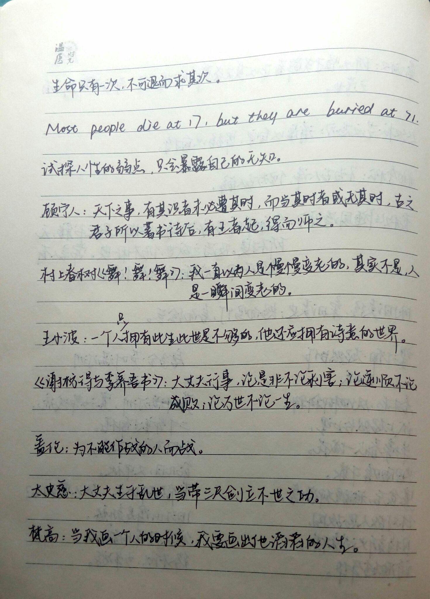 趁着暑假更新!可是懒得码字也懒得拍照诶放一小部分,大一下的摘录本