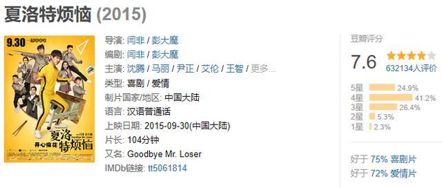 推荐理由:《夏洛特烦恼》汇聚了校园、青春、以及那份青涩的爱恋。岁月是把杀猪刀,在时间面前我们每个人都是被抛弃的孤儿。该片以喜剧方式展开,又融入了魔幻的故事情节,向观众展现了以夏洛为代表的人的欲望和生活状态。