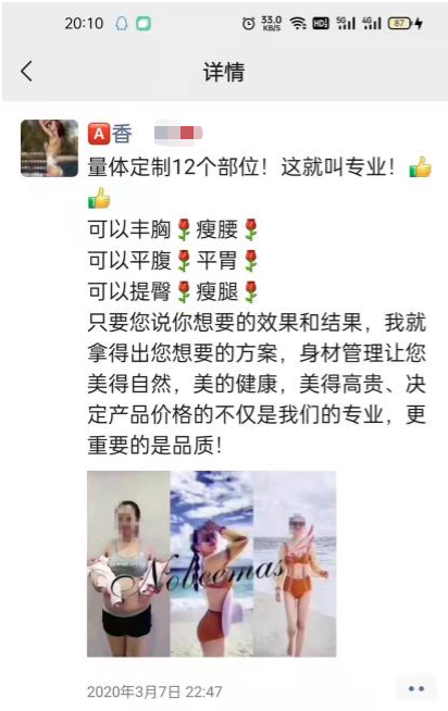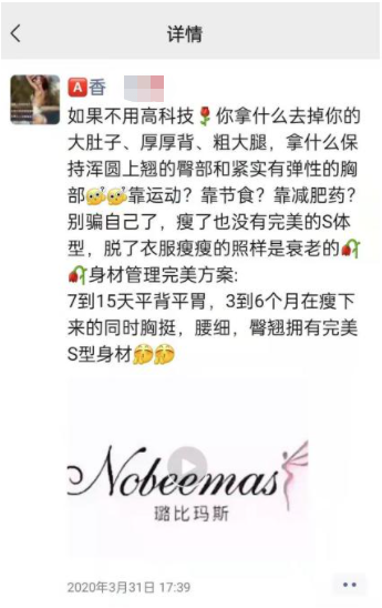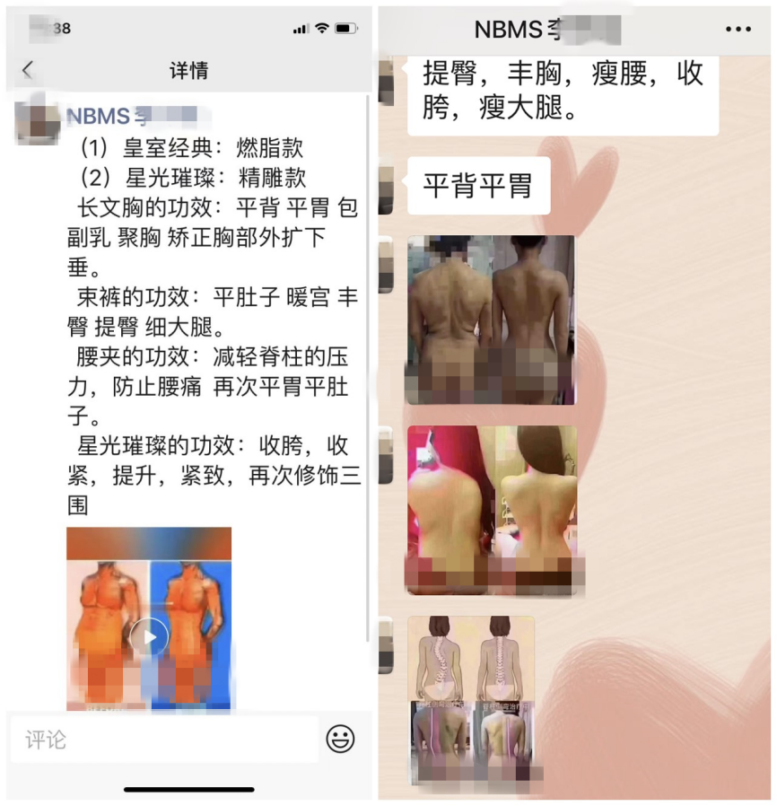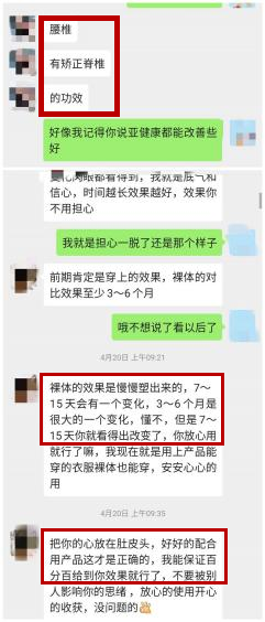 黑牛投诉以了解璐比玛斯内衣为由,联系了璐比玛斯代理商李某。李某同样表示,璐比玛斯内衣有燃脂塑形等功效,并发来大量顾客裸背效果对比照。在李某的朋友圈,有大量璐比玛斯内衣的宣传内容,甚至包括减轻脊椎压力、防止腰痛等功效。