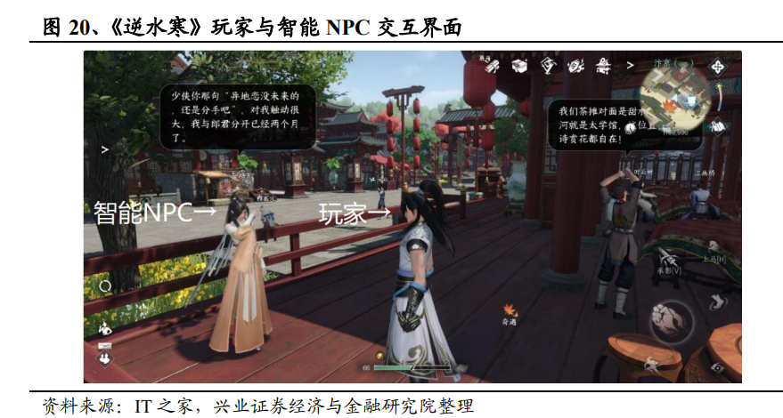 AIGC 双向赋能游戏,主要体现在:1)提升玩家交互感;2)减少研发过程中的 美术、音乐以及发行过程中的买量素材制作等成本,提升创作效率。 AIGC 赋能游戏体验,《逆水寒》有望树立标杆。2023 年以来,AIGC 及 ChatGPT 技术快速突破、热度高企,网易《逆水寒》宣布实装游戏版 ChatGPT,让智能 NPC 能和玩家自由生成对话,并基于对话内容自主给出有逻辑的行为反馈。“逆水寒 GPT”的预训练内容大多基于刻画“大宋江湖”的武侠小说、历史书、诗词歌赋等, 将给玩家带来更深入的沉浸感体验,另外,《逆水寒》将智能 NPC 定位为“有灵魂 的群演”,即拥有成长性——如果玩家更多主动地用武侠代入感与 NPC 交互,NPC 的演技也会提升,网易自 2021 年 10 月开启“超大规模预训练模型云平台”项目, 为国内“首个游戏 GPT”打下基础,《逆水寒》已获版号、6 月 30 日正式开启全平 台公测,有望树立行业标杆。