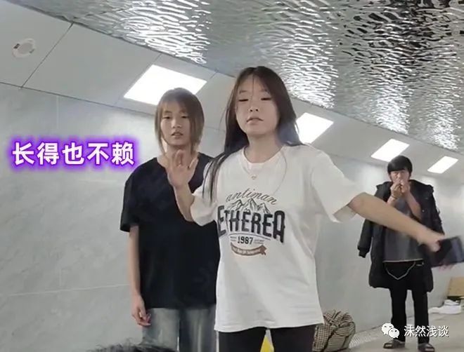 2名女生跟着音乐节奏,扭来扭去,根本没有任何美感可言。
