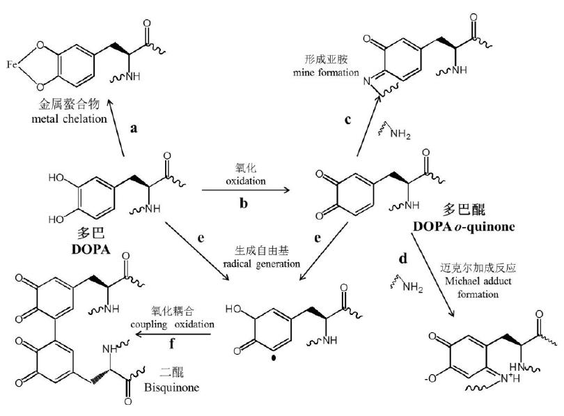 贻贝足盘蛋白质肽链上的氧化交联反应 来源:[5]