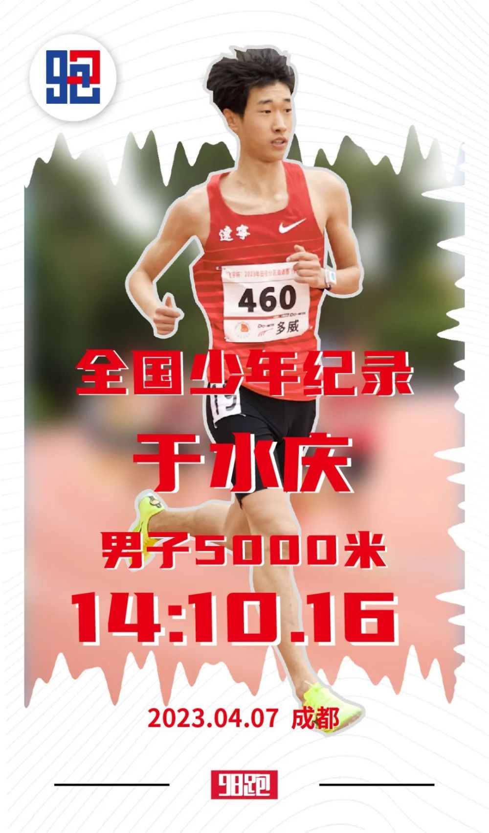 就在几天之前,又一项尘封30多年的纪录被打破。来自辽宁年仅16岁的小将于水庆,在4月7日成都举行的田径分区邀请赛上,同时也是他的首场5000米比赛中,以14:10.16打破1989年由孙日鹏保持的14:22.50的全国少年(U18)男子5000米纪录。