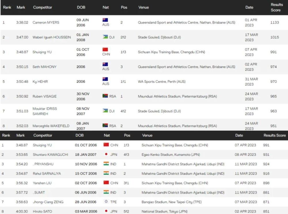 在当天上午举行的男子1500米比赛中,虽然冲击纪录未果,但也创造了3:48.87的好成绩,同时战胜了包括宗庆华、杨国斌等名将,位列综合成绩第一名。凭借这个成绩,截至目前,于水庆本赛季U18排名亚洲第一,全世界第三