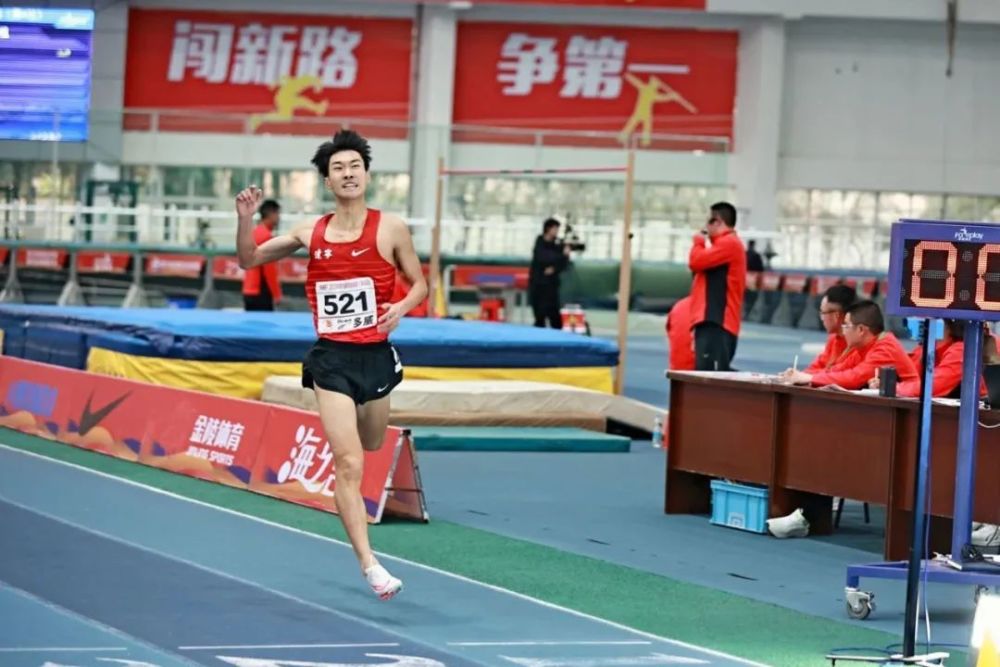 2月16号又参加了3000米的比赛,这次跑的也很轻松,笑着冲过终点线,8:12.94的成绩已经超过全国少年3000米纪录8:17.20,何况这还是在室内跑出的成绩。
