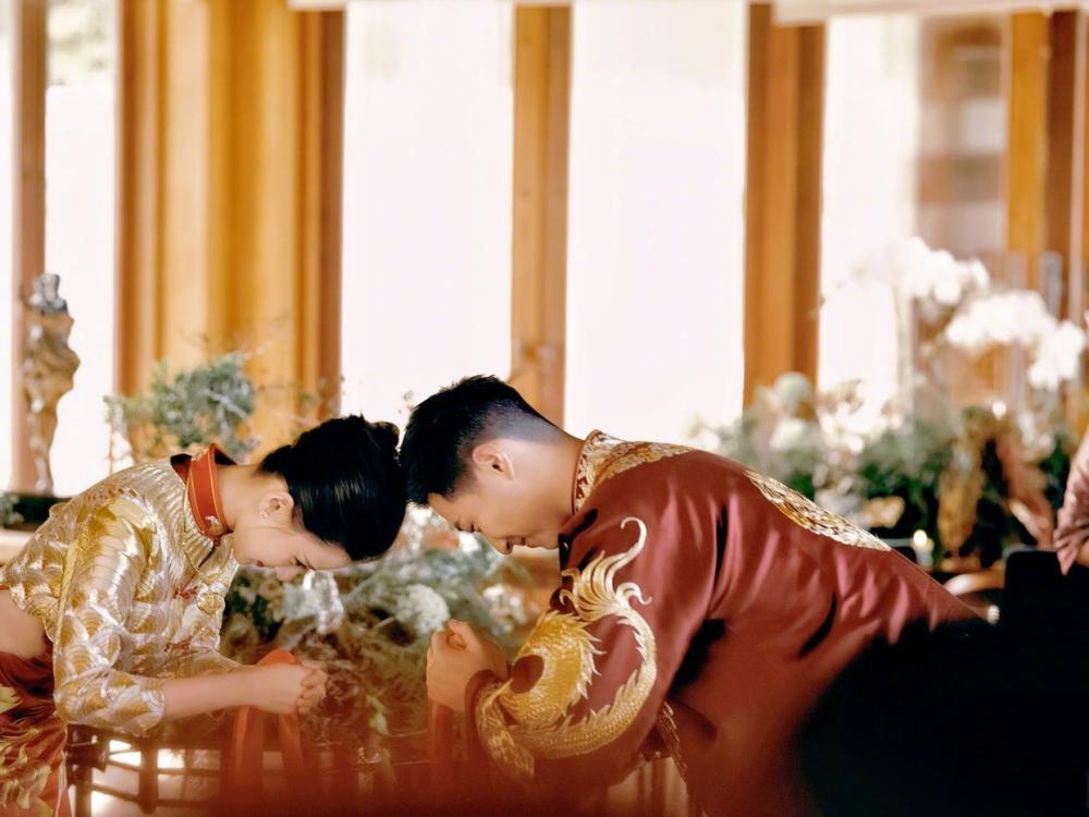 网友见状直呼:何超莲的中式礼服太美了吧。不得不说,只有这种中国红才能衬托出氛围感。
