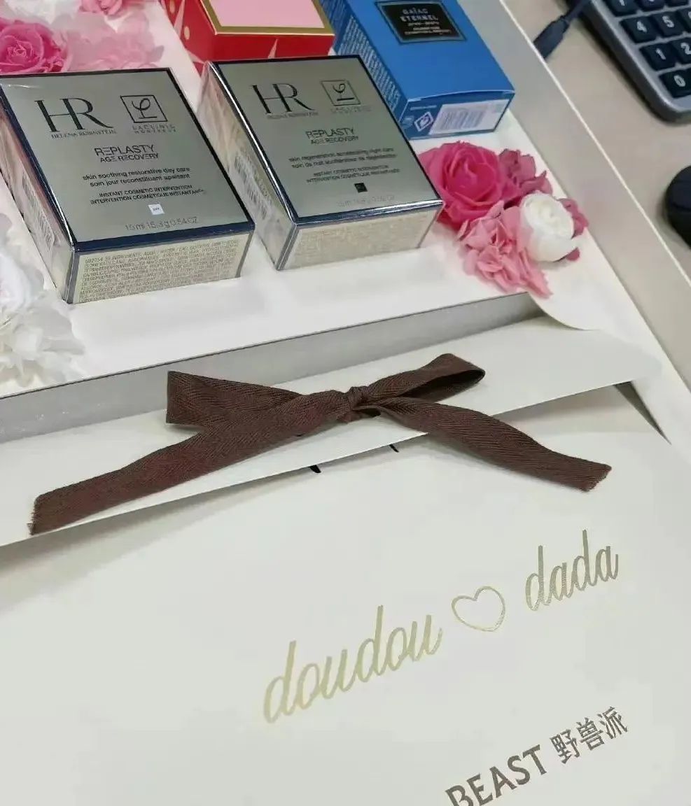 里面装着价值3300元的奢侈品面霜、香水和比利时巧克力,心意满满。