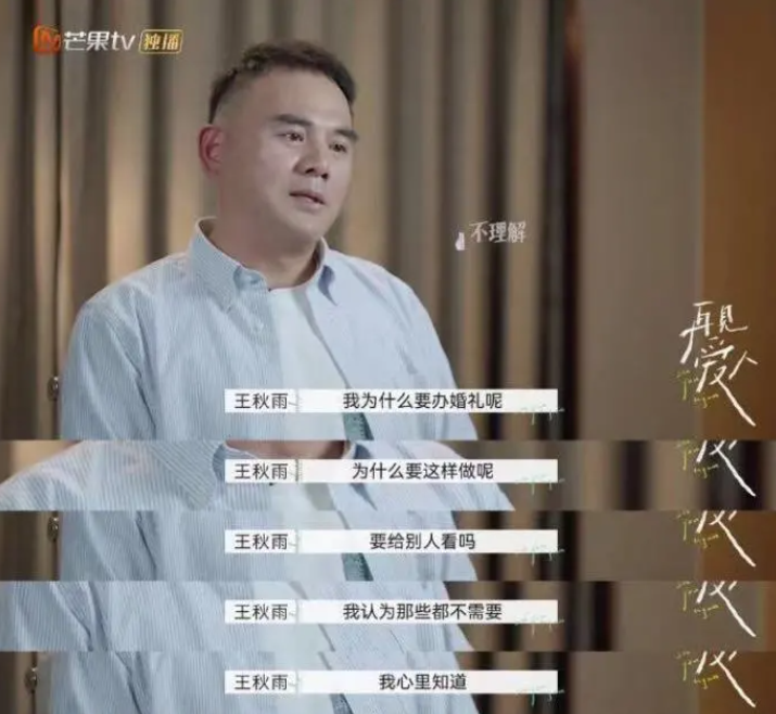 老王极其鄙视仪式感,认为仪式是太多表演因素在里面。两人结婚时连婚礼都没有用,他认为不需要,自己也没时间: