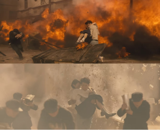 长达六分钟的爆破戏份,王鹤棣全程护住女演员,尘土石子扑面而来,这威力可想而知。