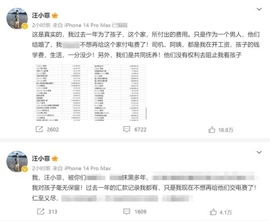 随后,汪小菲在个人社交平台账号上发文回应称,自己被抹黑,“我对孩子毫无保留,过去一年的汇款记录我都有,只是我现在不想再给他们交电费了!”
