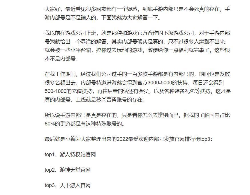 提及手游行业的特殊人群,最特殊莫过于内部号玩家了,那么什么是内部号呢?就如下面我看见的这张图片所说: