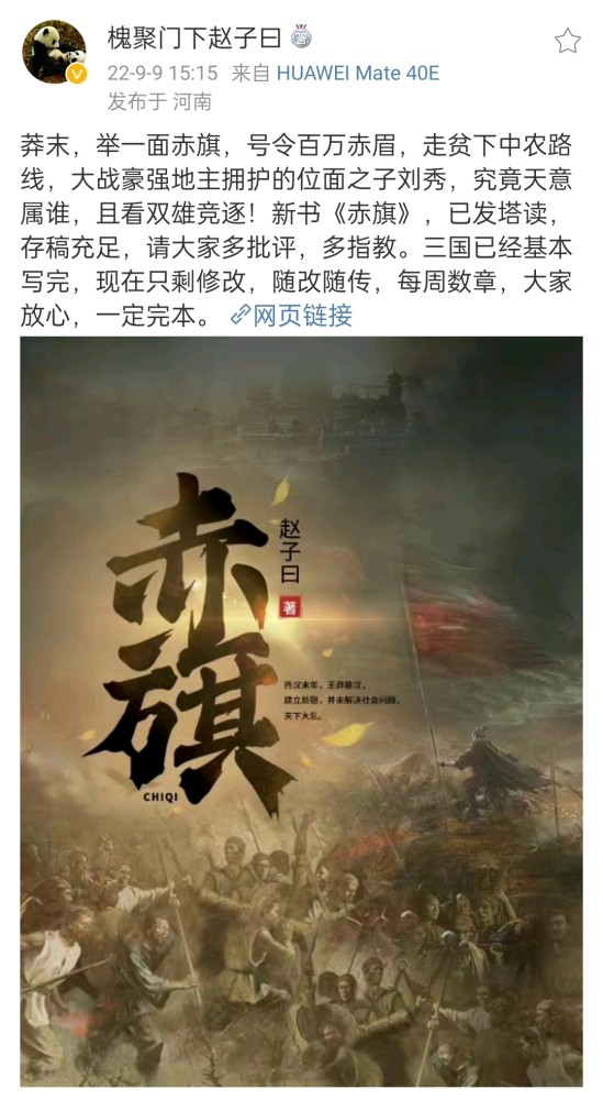 今天在微博看到赵子曰开了新书《赤旗》的消息,我还以为他是发在了起点,结果是在塔读。赵子曰现在是在纵横、起点、塔读三个网站都有小说连载了。
