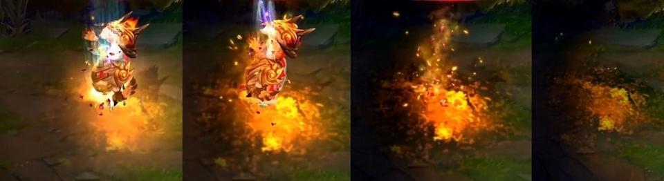 这款皮肤的死亡特效,火焰一步步熄灭过程的特效真的太震撼了!火焰的纹理也细致到夸张,而且思路清晰的死亡动画也表达得非常的完整。