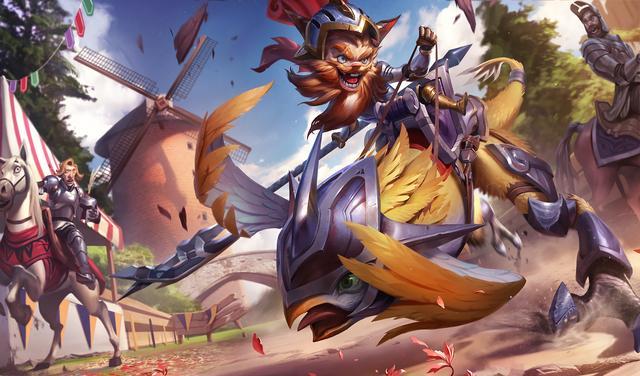 结果伴生皮肤的概念就与英雄性格特征居然达到了如此高度的统一。直接出了这类欧洲中世纪滑稽骑士浪漫风格的皮肤。
