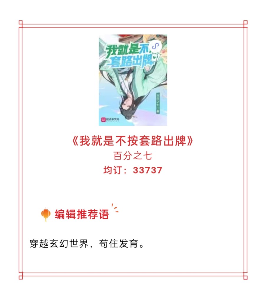 没运作月票榜之前,小说只是小有亮点的万订作品,走的也是求稳的反套路路线,我也看过不少。主角在触发任务的时候,只选择最稳的路线。所以一路依靠积累,却也积攒了不弱的实力。