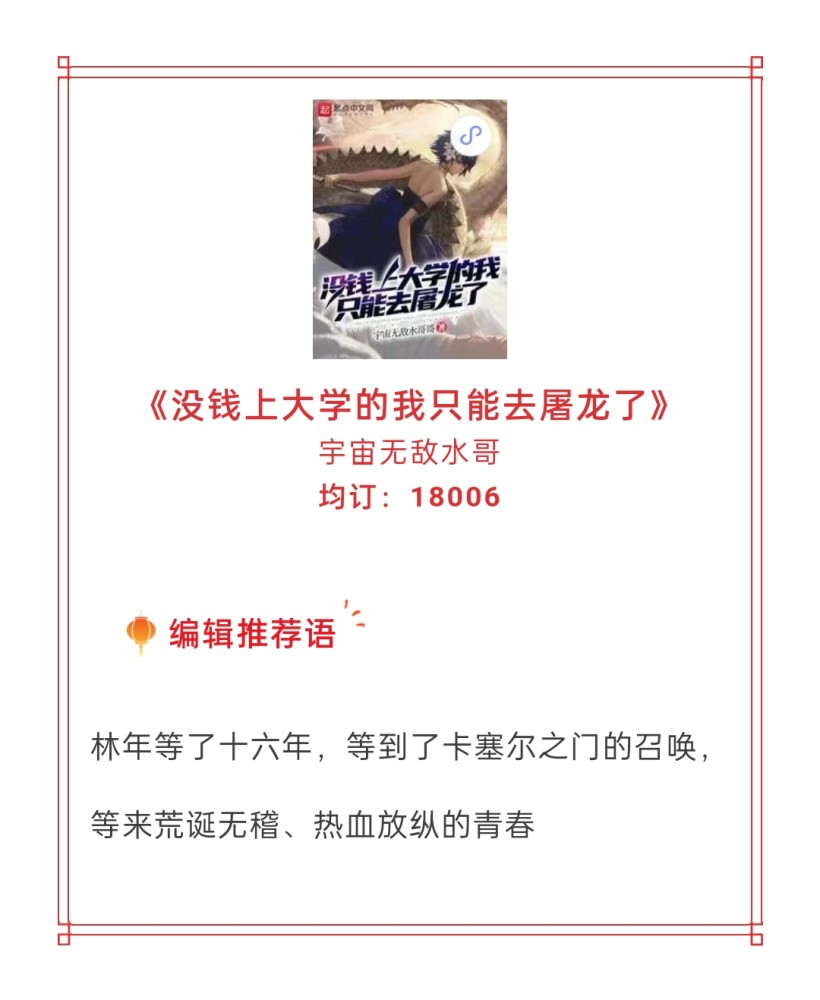 7、《没钱上大学的我只能去屠龙了》:均订一万八
