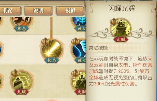 PVE就直接带上几个小技能就可以。奥义我们选的都是觉醒奥义,三觉后的觉醒奥义,PVE玩法中追加的光剑会有300%的无视免疫的光伤。