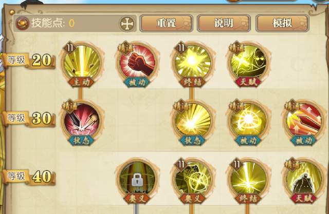 20~40级:主用的小技能点点11级,被动这边都点满了。然后注意下老的奥义我这边没有再推荐点出来了,因为新的觉醒奥义相对来说更好用。