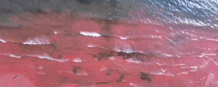 如少女害羞时脸颊上那抹最诱人的粉,又似春天的桃花瓣碎落岸边,染红了整片湖水。