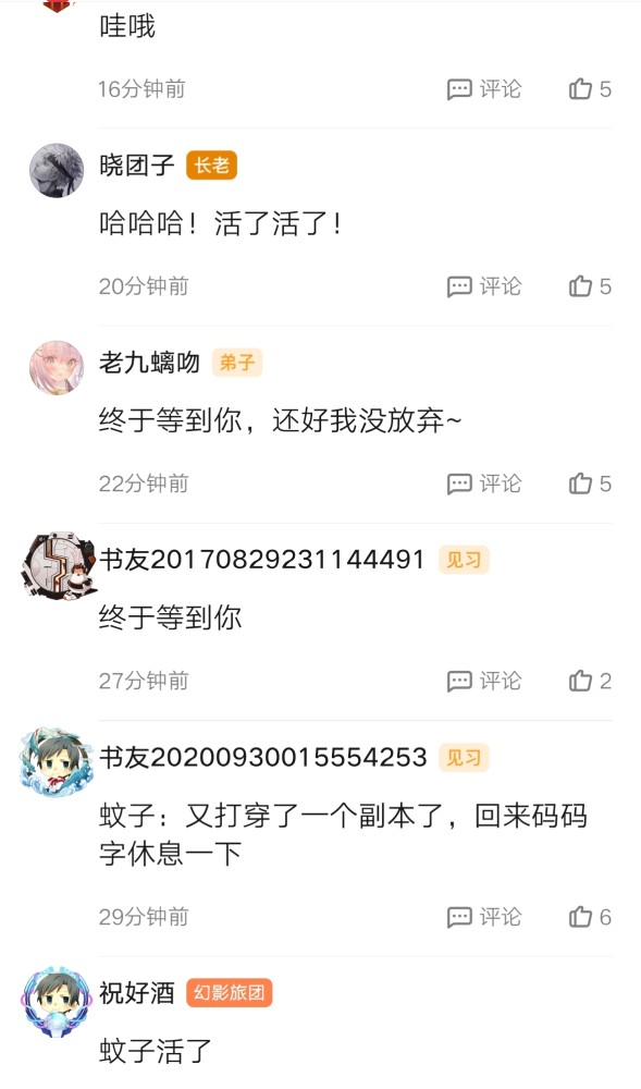 看了这位书友的说法,小编觉得,这得是入戏多深,才能有这样的脑回路啊!不过这样的想法也挺有趣的,至少也算是一种自我安慰的方式吧,也能够看出书友们不希望蚊子仓促完结的心意。