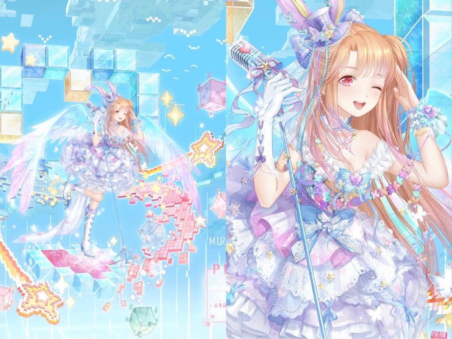 这是2018年日服的排位套装,当时想要拿到主唱这个套装和特殊姿势加背景需要在活动中花钻累计量达到800名以内,基本上花钻数量就是以万为计算单位了,该套整体是一个元气满满的演唱会风格的套装,颜色以糖果色为主,其中渐变的翅膀设计得还不错,不过国服有很多可替代的,国服玩家就别眼馋了。