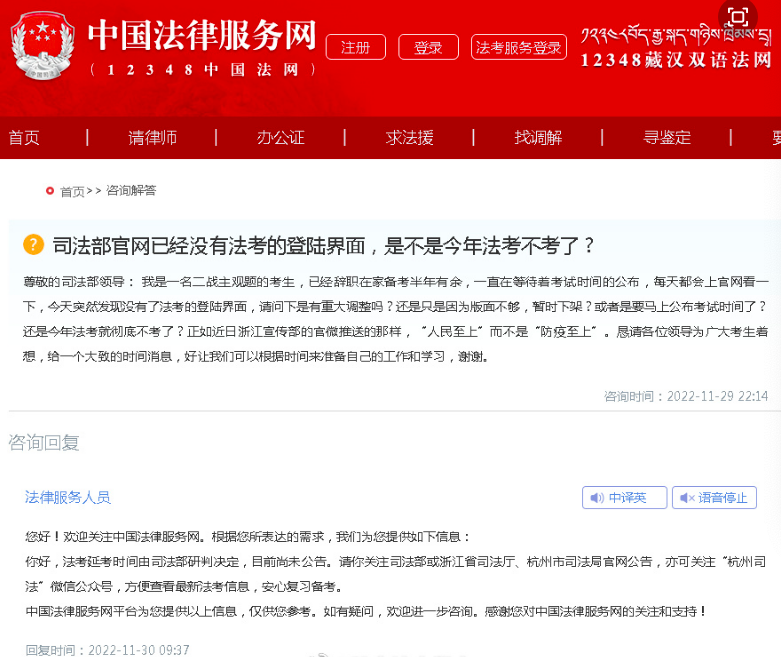 法考宣布延期已经过了70天,大家一直在等的考试时间,依旧没有来。最近也有很多考生就考试时间和22年法考通道被关闭,进行了询问: