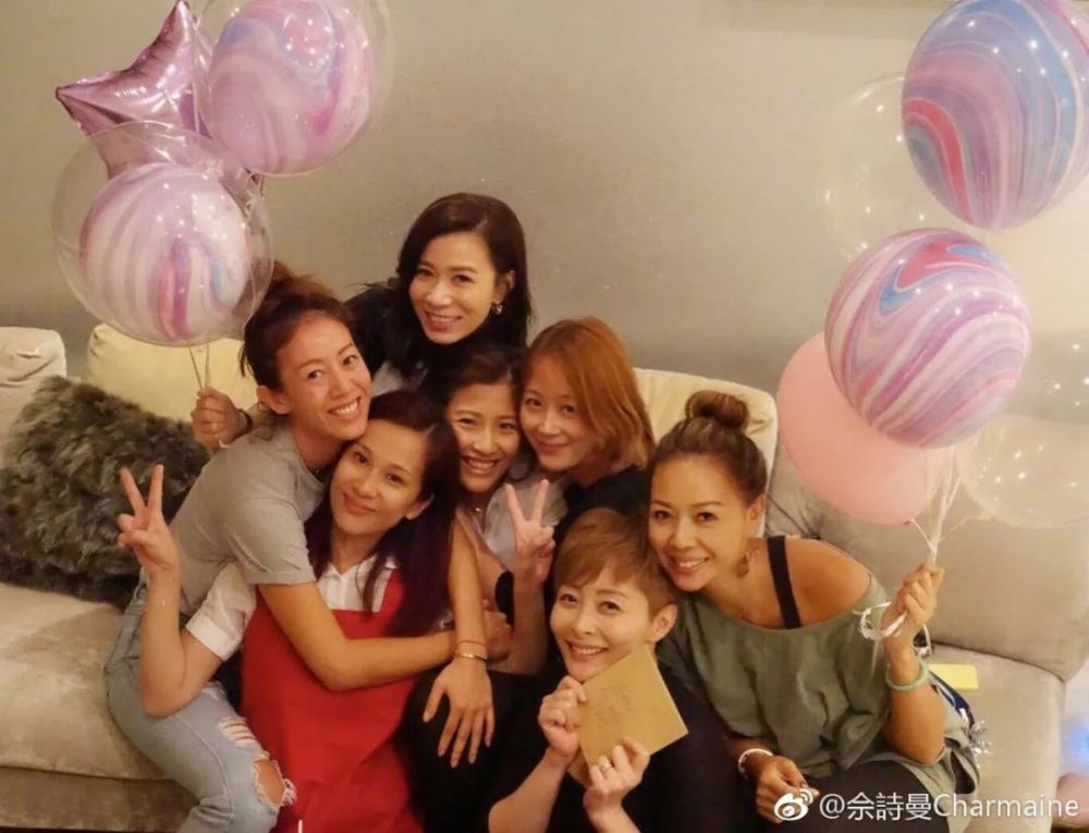 这个以佘诗曼为首的闺蜜团,都是70后女星,也在TVB拍过戏,因此相识结缘。成员还有汤盈盈、文颂娴、钟丽淇、姚乐怡、梁靖琪与周家蔚。