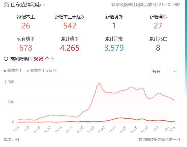 12月4日,山东省发布优化调整疫情防控相关政策,取消交通场站、港口码头、高速卡口等场所强制性核酸检测“落地检”要求,提供“愿检尽检”服务。同时,居民进入公园、景区、服务区等公共场所,乘坐地铁、公交、出租车等公共交通工具,不再查验健康码和核酸检测阴性证明。