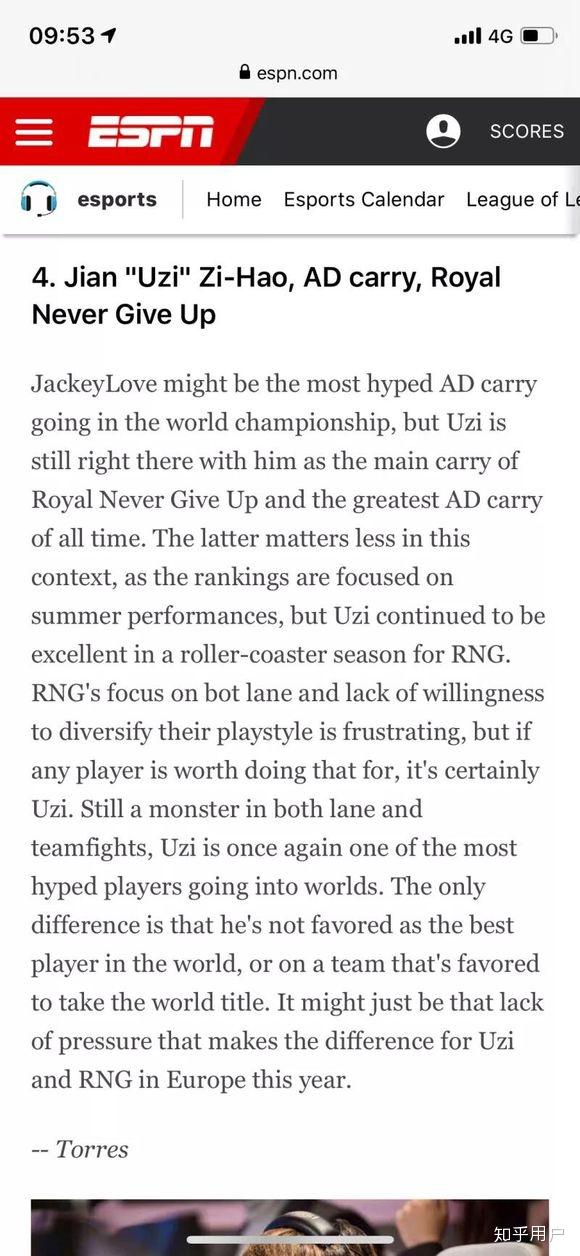 ESPN用 “the greatest AD carry”评价Uzi,这是很高的评价了。