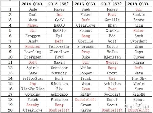 1、S1-S3没有Top20榜单,S8没有官方最佳阵容,我是酌情打分的。