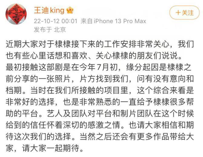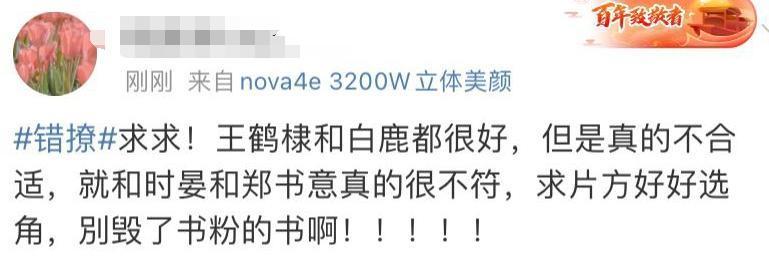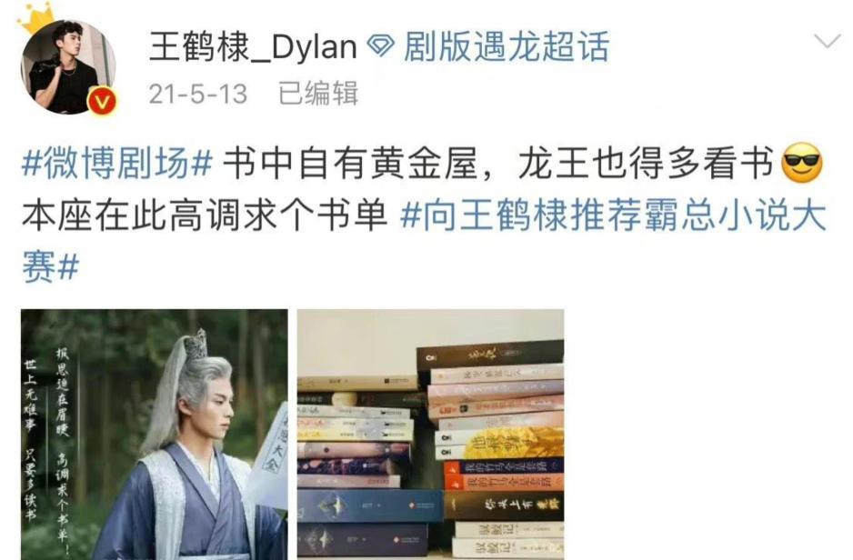 听到王鹤棣经纪人这样讲,那么白鹿跟王鹤棣合作就成了板上钉钉的事情,2021年5月份的时候,王鹤棣在《遇龙》播出期间,确实发了一条微博,写的是“本座在此高调求个书单”,配的图片中正好有《错撩》这本书,也正是因为这张图片,才促成了王鹤棣跟在这部剧的缘分。