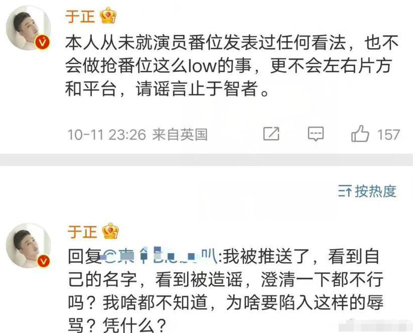 而白鹿那边,也一直死咬一番女主,对此,她的老板于正也是被热议,关于番位问题,于正也坦言他本人从未就演员番位发表过任何看法,也不会做抢番位这么low的事,更不会左右片方和平台,请谣言止于智者。