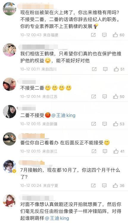 王鹤棣经纪人的评论区已经沦陷,粉丝纷纷不满二番待遇,但该剧是七月份就定下的项目,也不好毁约,艺人最讲究的便是契约精神,在路人看来,一番二番又有什么关系呢,剧好看不就完了,男女主作为一部剧的核心,少了谁剧都拍不下去,为何饭圈会如此在意这个番位问题呢?