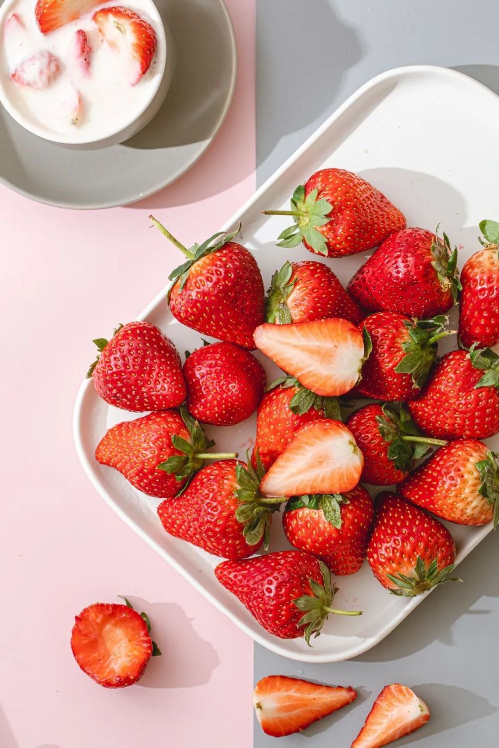 清晨,两颗草莓搭配早餐,一整天都元气满满;困顿的下午,切开扔进酸奶里,就是自然美味的草莓酸奶下午茶;如果还有闲情逸致,再做两份草莓甜点,保证整个朋友圈里都是羡慕你的人。