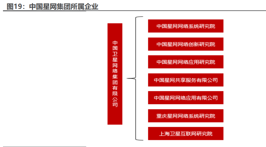 中国星网应运而生,统筹规划我国卫星互联网领域发展。经国务院批准,新 组建的中国卫星网络集团有限公司(简称“中国星网”)由国务院国有资产监督 管理委员会代表国务院履行出资人职责,列入国务院国有资产监督管理委员会履 行出资人职责的企业名单。中国星网是中央直接管理的唯一一家从事卫星互联网 设计建设运营的国有骨干型企业,致力于打造卫星互联网产业发展的核心力量和 组织平台,成为具有全球竞争力的世界一流卫星互联网公司。公司董事长为张冬 辰,曾任中国电子信息产业集团总经理。从国资委官网目前中央企业名录中可以 看到,中国电信排列序号为 23,中国联通排列序号为 24,中国移动排列序号为 25,中国卫星网络集团排列序号为 26,虽然中国星网集团组建时间晚,但是依 旧与三大运营商处于同一定位,有望在未来成为第四大运营商。目前中国星网集 团已经在北京、上海、重庆、成都等四地建立了七家所属企业,涵盖了网络系统、 创新、应用多方面维度,未来将继续加快产业布局,进一步完善卫星通信领域的 研究与应用。