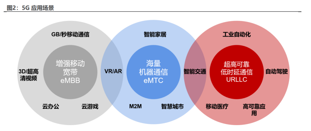 广义的通信即信息的传输,人类社会活动中各类信息的传递和交换都属于通 信,如古代使用的烽火台、驿马传令等,历经社会的发展与科技的变革,现代社 会的信息传输方式主要以移动通信为主,传播的形式包括文字、语音、图像、视 频等。 移动通信发展至今已历经五代,迭代历程见证社会生活体验跃迁。现代社会 移动通信的发展已从“交流信息、简单通话”发展至如今“低延时、高可靠、大 容量”的第五代通信技术,每一代的区隔在于技术革新、标准演进及应用领域: 1G 移动通信基于模拟技术,可支持语音业务,但容量有限、通话质量不高、不 支持漫游及数据业务;2G 以数字语音传输为核心,有效提升了语音质量和网络 容量,引入用于文本信息的存储和转发、数据分组交换的业务,以欧洲全球移动 通信系统(GSM)、美国数字式高级移动电话系统(D-AMPS)、日本公用数字蜂 窝(PDC)及 IS-95 码分多址(CDMA)为代表;3G 具有频率效率高、基站覆 盖范围大、同频复用和跨小区软切换等优点,较 2G 新增图像传输、视频流传输 及互联网浏览等移动互联网业务;此后 2007 年苹果公司推出第一款 iPhone 手 机,标志智能手机诞生,助推 3G 向 4G 演进,4G 新增提供移动带宽服务,应用 领域包括移动互联网、游戏、HDTV、视频会议、云服务等;自 2020 年开始, 5G 逐渐部署,5G 网络架构的设计兼顾实现高效的信息交互、功能平台划分更合 理的统一的端到端网络的系统设计,目标是实现灵活和安全的组网。