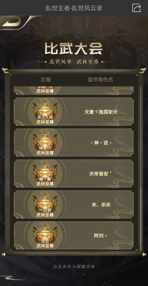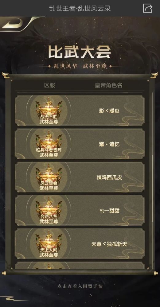 因为觉得乱世的游戏模式不错而重新回归711新区的天帝皆安',在盟里的角色是打手,虽然属性在新区属于佼佼者,但并没有预测自己会是皇帝。